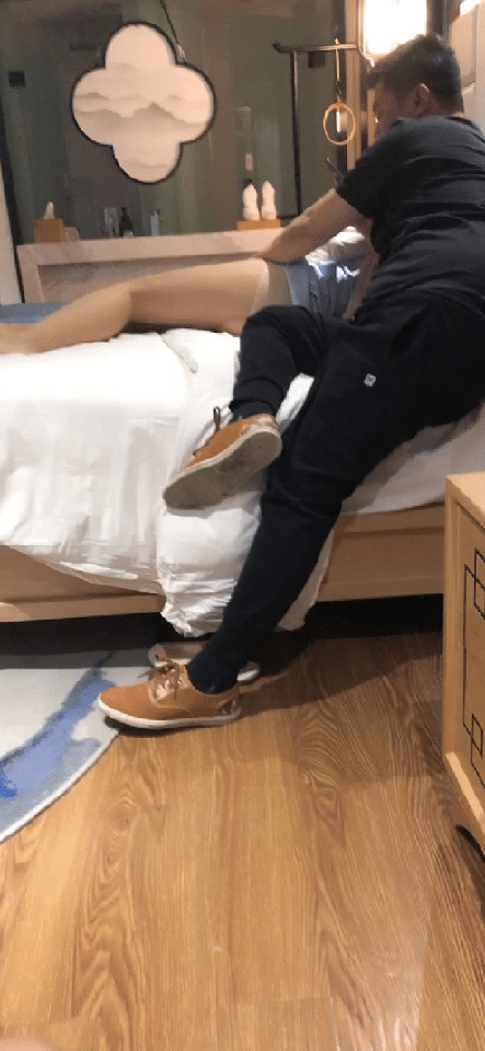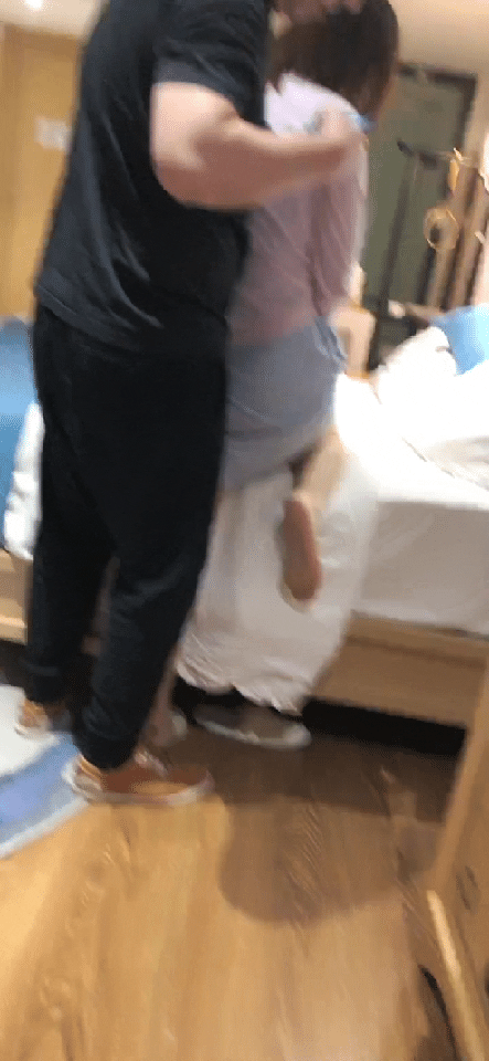 舅妈被朋友推到在床上,掀起裙子,打屁股,掰开屁股摸